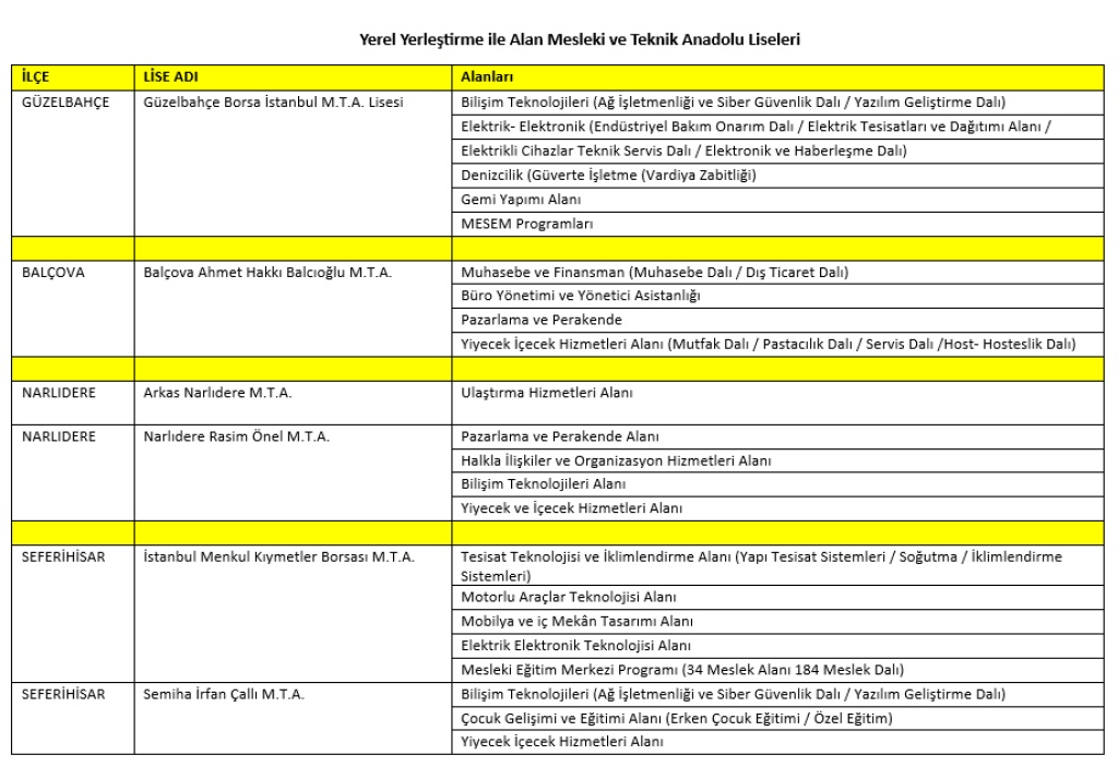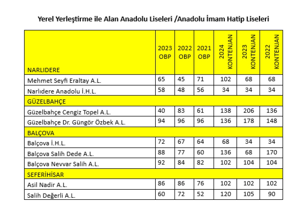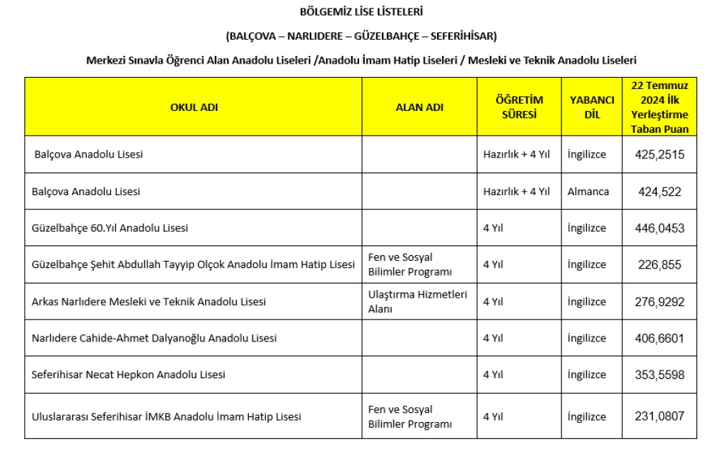 Bölgemizde Bulunan Liseler (BALÇOVA /NARLIDERE /GÜZELBAHÇE /SEFERİHİSAR)